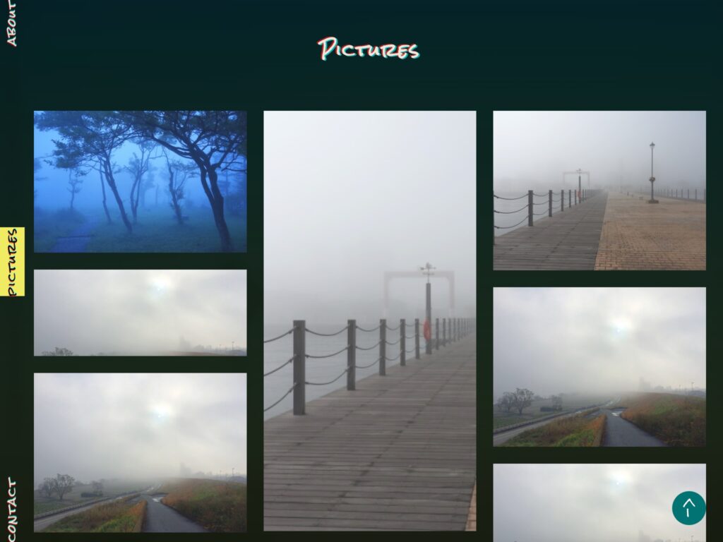 時間経過で背景色が変わるギミックや、ノイズ混じりの文字、ローディング中のぼやけた表現など、ダークなイメージで制作しています。